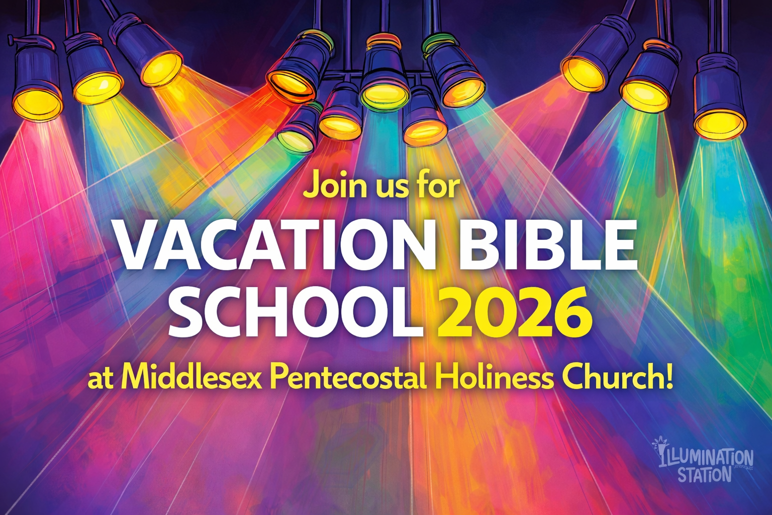 Join us for Vacation Bible School 2026 at Middlesex Pentecostal Holiness Church! From July 27–31, each evening from 6:30 PM to 9:00 PM, children will experience an exciting week centered around our theme, “Illumination Station.”